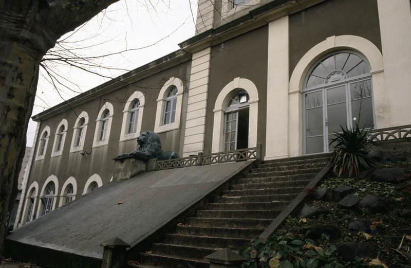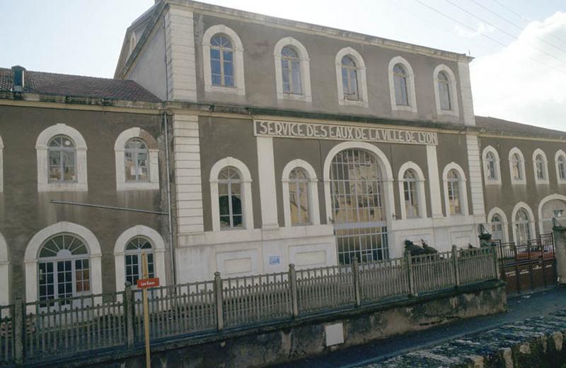 Usine construite en 1854 par l'ingénieur Aristide Dumont, pour la Compagnie Générale des Eaux à qui la ville de Lyon avait confié le monopole de distribution. L'ensemble de l'usine et du réseau de distribution est mis en fonctionnement en 1857. Les trois pompes de Cornouailles, qui fonctionnaient à la vapeur et qui servaient à pomper et à refouler l'eau du Rhône, seront utilisées jusqu'en 1910. Deux pompes sont démontées en 1938. Une seule a été conservée, c'est le dernier engin de ce type subsistant en France et l'unique témoin de cette technique. L'usine des eaux de Saint-Clair, sur la rive droite du Rhône, formait à l'origine un véritable complexe dont subsistent : 1/ les bassins de bas service et de filtration, permettant le captage, la circulation et la filtration des eaux du Rhône (ce sont de vastes caves, soutenues par des piliers, qui ne sont plus utilisées depuis 1976, mais auxquelles on peut encore accéder) ; 2/ l'usine des eaux proprement dite, bâtiment aux dimensions peu imposantes, de style néo-classique, composé d'un corps central à deux niveaux et de deux ailes symétriques dans le même alignement. La machine de Cornouailles que l'usine conserve, a été construite au Creusot par Schneider. C'est un ensemble gigantesque s'étageant sur 13 mètres de hauteur. Le balancier en fonte a la forme d'une navette de 7 mètres de long, pesant 35 tonnes, et calé par des poutres. Il est relié d'un côté à la pompe et de l'autre à un piston qui a 1 mètre de diamètre et avait une course de 2, 5 mètres. Cette machine avait une force de 175 cv ; il y avait entre 6 à 10 coups de piston par minute, chacun des coups refoulant 2 mètres cubes d'eau. La machine est en acier et les coussinets en bronze.