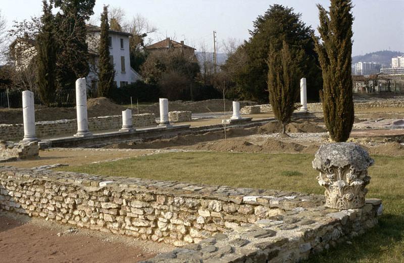 Le site est occupé par un habitat et des ateliers de potiers vers 30 avant JC au plus tôt. Le quartier est occupé par des maisons à péristyles, des entrepôts, des boutiques parfois accompagnées d'un habitat modeste et des ateliers d'artisans. Le quartier est limité au sud, dès le milieu du 1er siècle, par le complexe du "Palais du Miroir" qui séparait les quartiers antiques de Saint-Romain-en-Gal et Sainte-Colombe-lés-Vienne. Après un abandon au 4e et 5e siècle, quelques couvents semblent être établis dès le 5e siècle. La découverte de mosaïques polychromes au 18e siècle, et la conservation d'une partie des thermes du Palais du Miroir sont à l'origine du développement des recherches archéologiques sur cette rive.