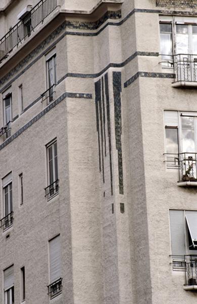 Immeuble d'appartements de sept étages construit en 1911 par l'architecte Emmanuel Cateland, également propriétaire du terrain et promoteur de l'opération. Première oeuvre de cet architecte, c'est également le premier immeuble d'habitation de Lyon entièrement construit en béton armé (et appelé le "gratte-ciel" par les Lyonnais dès sa construction). L'ingénieur Blazin de l'entreprise Hennebique étudie le projet, sa réalisation étant confiée à l'entreprise Grangette frères de Roanne, concessionnaire du système Hennebique. La façade est soulignée par des mosaïques de faïence incrustées dans le crépi.