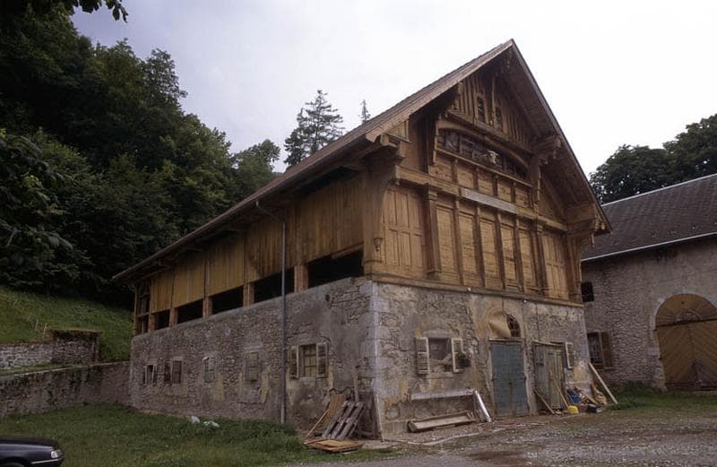 Ancienne maison forte médiévale agrandie au 16e siècle, transformée dans la seconde moitié du 19e siècle (décors intérieurs). A la même époque (vers 1860) , création d'une ferme-modèle autour du château à partir des communs du 17e siècle (écuries fin 17e-début 18e siècle) en ajoutant plusieurs corps de bâtiments, dont la grange avec un décor en bois sculpté très riche. Dans le parc, fontaine du 18e siècle et ensemble de cascades artificielles.