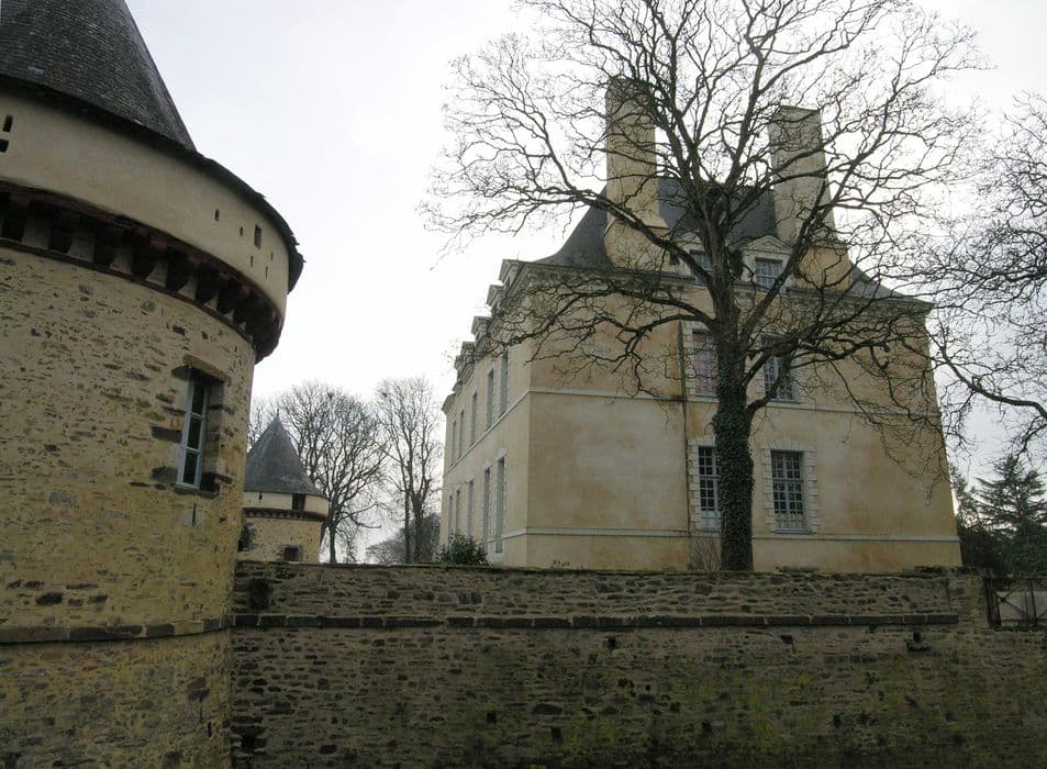 Ce château a été saccagé pendant les guerres de la Ligue, puis reconstruit en 1632 par Charles Ier du Châtellier. Il a ensuite été remanié vers 1750 (boiseries) et réaménagé au 19e siècle (décor intérieur). Seuls deux plafonds et l'escalier ont conservé leur décor peint du 17e siècle. Le château est construit sur une terrasse entourée de larges douves maçonnées. La terrasse est flanquée de quatre tours d'angle à mâchicoulis servant de chapelle, colombier, cabinet d'archives et logement de domestiques.