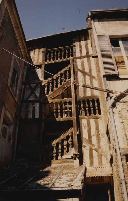 Escalier en bois à balustres tournés et sa cage à pans de bois dans la cour (cad. AN 682) : inscription par arrêté du 9 décembre 1993