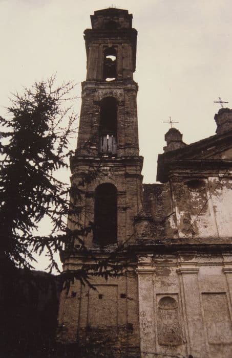 Achevée en 1721, l'église piévane a été reconstruite sur l'emplacement d'une ancienne chapelle médiévale. Elle a fait l'objet de plusieurs restaurations au cours du 19e siècle et son décor intérieur est daté de 1863. La façade présente deux niveaux rythmés de pilastres, et se termine par un fronton triangulaire amorti d'acrotères sommés d'une croix. Le clocher, à quatre niveaux, a été flanqué dans le prolongement de la façade. Les élévations latérales présentent chacune un décrochement correspondant à une chapelle. Le chevet est à pignon. La couverture en lauze révèle la structure interne de l'édifice : une nef unique coupée d'un transept surélevé et un choeur. Au-dessus de la croisée du transept s'élève une coupole sur pendentifs. Le décor peint se caractérise par la richesse de sa polychromie et la variété des motifs.