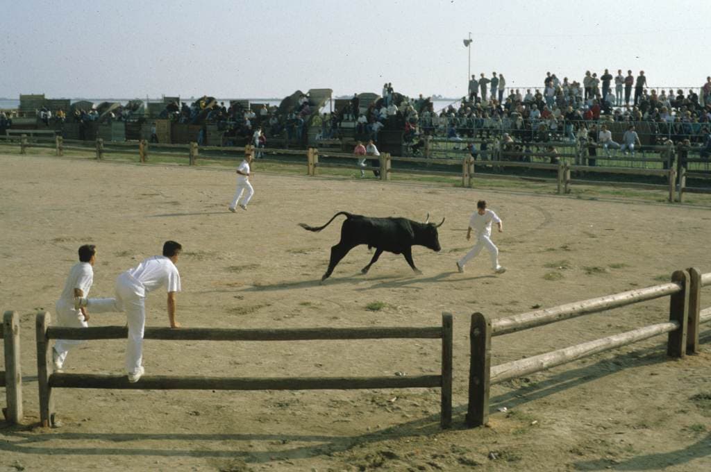 Intérêt ethnologique de la tradition culturelle de la bouvine en Bas Languedoc. Pour suppléer à la place Saint-Louis où se donnaient les courses, la municipalité fit installer une arène en bois à l'occasion de chaque fête votive. Certains vignerons nouvellement enrichis, amenèrent sur place de petits "théâtres" décorés pour y installer leur famille. Les autres Aigue-Mortais les imitèrent et depuis lors la tradition s'est maintenue. Plan rectangulaire de 104 théâtres, devant lesquels sont installés des "burladeros" en bois. Toril en bois face à la tribune municipale dite aussi "théâtre des vieux". Piste octogonale délimitée avec des madriers. Deux portails métalliques ("travettes"). Monté chaque année début octobre à l'extérieur de la ville.