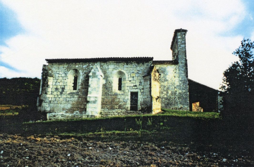 L'existence de la paroisse est attestée dès le 12e siècle (porte romane murée dans le mur sud de la nef). Si l'édifice fut affecté par les guerres franco-anglaises, il fut épargné par les guerres de Religion et conserve son état du 16e siècle. Dans la seconde moitié du 16e siècle, le choeur fut réédifié et une chapelle latérale élevée. Le décor peint du choeur date de cette période. Celui de la nef semble date du 17e siècle. L'accès se fait par une porte du 13e siècle inscrite dans un arc brisé en tiers point. Le clocher comporte quatre arcades en plein cintre ainsi qu'une génoise à son faîte.