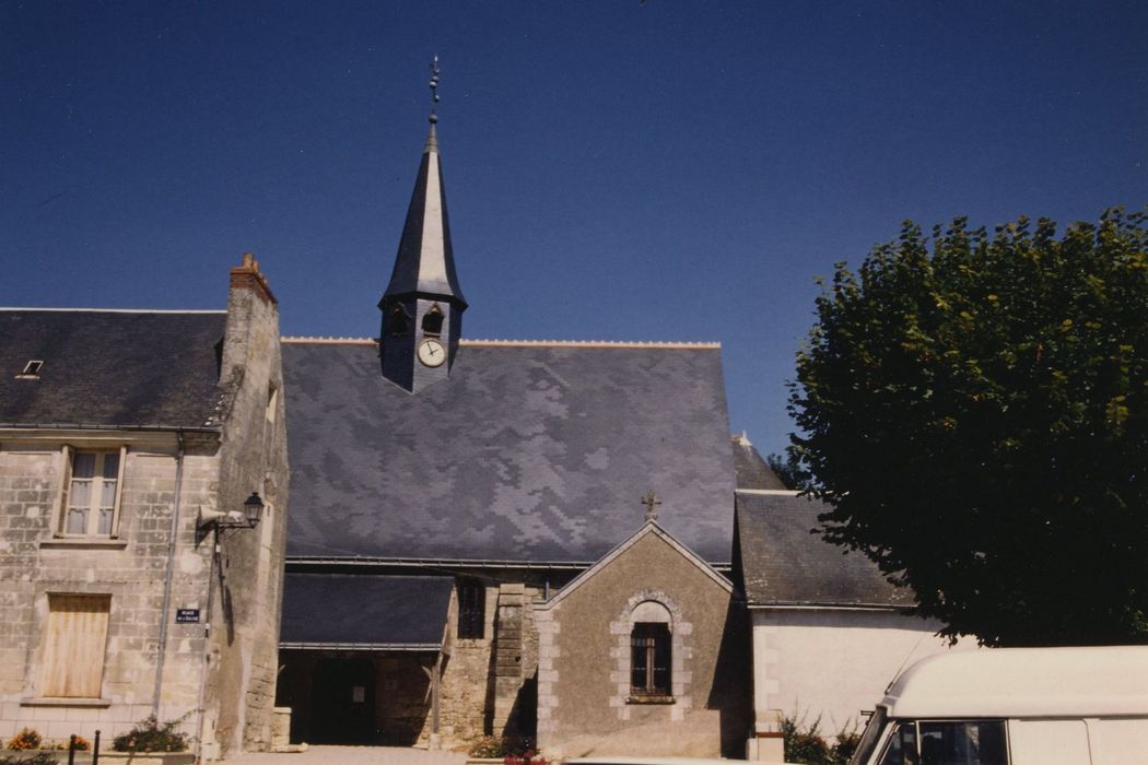 L'église fondée à la fin du 10e siècle, qui dépendait de l'abbaye de Marmoutier. Elle présente un plan rectangulaire achevé par une abside semi-circulaire. La nef et l'abside sont du 11e siècle. L'entrée s'effectue au sud, par une baie en plein cintre refaite au 16e siècle. Après un incendie, le mur nord a été reconstruit au 12e siècle, en avant du mur précédent, créant une légère asymétrie. En 1923 a été découverte la fresque du 12e siècle qui couvre le cul-de-four de l'abside : elle représente le Christ en gloire dans une mandorle entouré du Tétramorphe et de deux anges.