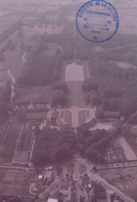 Ensemble du parc (cf plan annexé à l'arrêté) ; façades et toitures des bâtiments des communs, y compris les décors intérieurs du 18e siècle, des grilles du bâtiment de la buanderie avec ses installations fixes, des pavillons dans leur intégralité (cad. C 273 à 283, 285 à 299, 303, 415, 599, 601 à 603, 650, 651, 871) : inscription par arrêté du 14 mars 1994