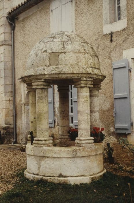 Logis de la fin du 17e siècle. Des murs de soutènement appuient les terres qui soutiennent le logis. Un portail sommé de trois acrotères à boule, conduit dans une cour fermée à l'est par un bâtiment de commun. Une petite terrasse au nord et un vaste espace planté de bosquets et de prés au sud, forment le cadre de ce logis. De plan rectangulaire, le bâtiment est accosté de deux pavillons formant ressaut sur chaque élévation, à l'est et à l'ouest. Un pavillon à l'est et une chapelle à l'ouest augmentent le logis à ses deux extrémités. Le corps de logis central se développe sur trois travées de baies. Les lucarnes des combles sont à ailerons sculptés de cercles concentriques et frontons cintrés sommés d'acrotères en croix de Salomon ou en forme de plumet. Cette demeure correspond aux canons de l'architecture 18e classique adaptée à la petite noblesse rurale charentaise.