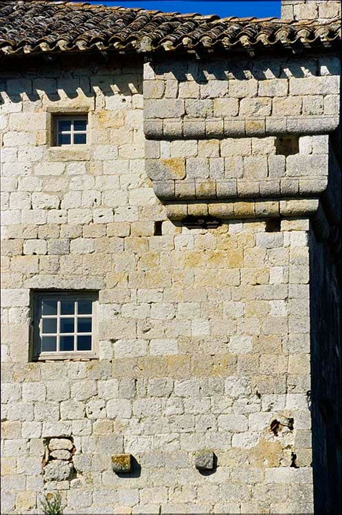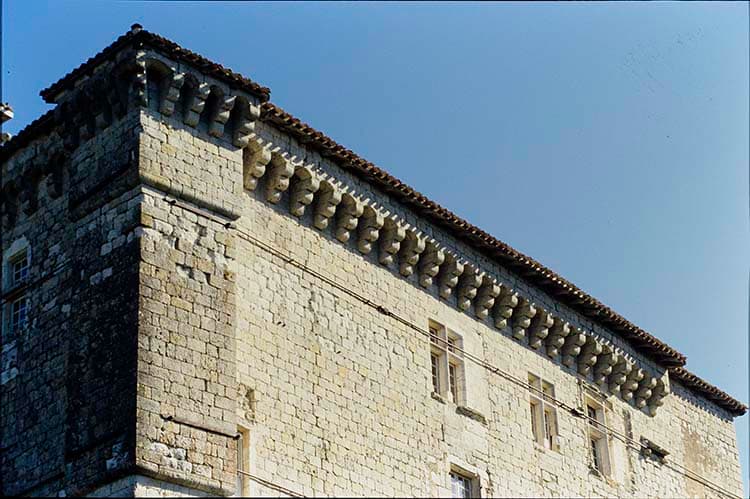 Château appartenant à la chaîne de la défense militaire de la Gascogne, qui commandait sans doute une des entrées du village. Un castrum est mentionné dès 1270. Le corps de logis est flanqué de deux tours opposées. L'intérieur est partagé par un mur de refend dans le sens de la longueur. Le second niveau assurait la défense. Le troisième niveau constituait l'étage noble, abritant le logement du seigneur. Le quatrième niveau était défensif, avec chemin de ronde, crénelage, mâchicoulis et échauguettes. Le château était protégé par un mur d'enceinte.