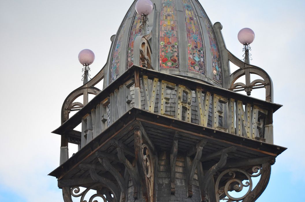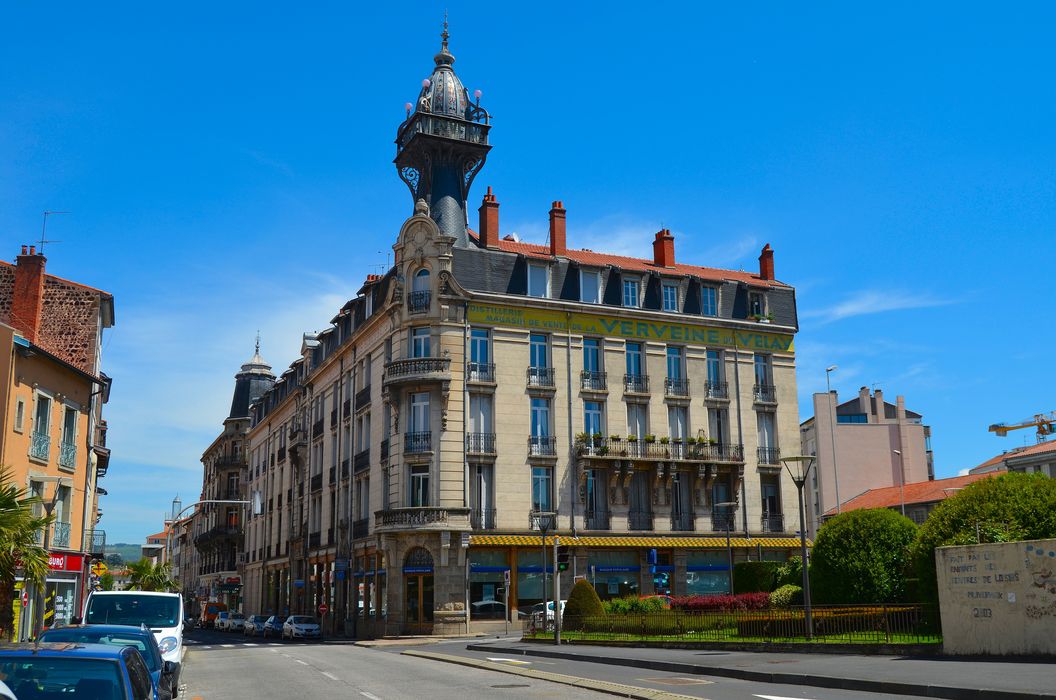 La distillerie de la verveine du Velay fut fondée en 1859. L'immeuble actuel a été construit par l'architecte Proy en 1906, et est représentatif de l'architecture commerciale de la fin du 19e siècle où la façade était conçue comme une enseigne publicitaire destinée à attirer l'oeil. Il accueille un magasin de vente et salle de dégustation au rez-de-chaussée, le logement du propriétaire et, à l'arrière, la distillerie. L'ornementation est réservée aux ferronneries et aux scultpures des frontons et encadrements de portes. L'élément original est la tourelle surmontée d'un dôme garni de vitraux créés par Charles Borie. Le dôme est constitué d'une armature en zinc. Un éclairage était prévu pour les lettres de la verveine par un réseau d'ampoules et de boules de verre. Cette tourelle était accessible à l'intérieur par un escalier en bois lamellé. £Dans le vestibule, un vitrail représente une jeune fille à la chevelure parsemée de fleurs, dans le goût de Mucha, symbolisant la verveine du Velay. Une grande peinture datée de 1907, due à Joseph Bernard, illustre la cueillette de la verveine avec, en arrière plan, des vues du site du Puy-en-Velay.