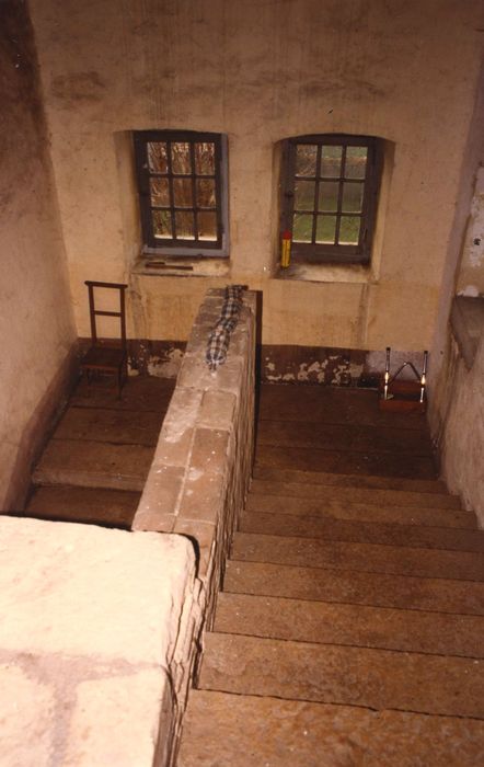 Structure du château du 15e siècle, sur laquelle ont été greffés une galerie et un escalier rampe sur rampe au 17e siècle. Chapelle datée 1447.
