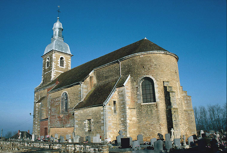 Chapelle construite au 13e siècle. Ajout d'une chapelle seigneuriale au 16e siècle. Eglise reconstruite entre 1780 et 1786, par l'architecte dôlois Anatole Amoudru, en ne conservant que la chapelle seigneuriale. Mur du cimetière construit de 1819 à 1826. Restaurations à la fin du 19e siècle.