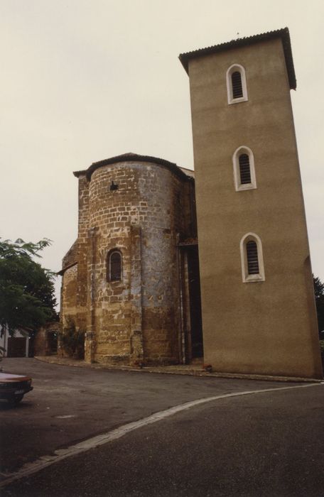 Ancien castelnau mentionné dès le 11e siècle. L'église est en partie romane (11e-12e siècle). La nef à quatre travées et les huit chapelles latérales voûtées d'ogives dans le style gothique méridional sont édifiées au 15e siècle. A l'intérieur, le choeur roman comporte des peintures murales de la fin du 13e siècle (coupole, arcatures et murs) , semblant être l'oeuvre d'un atelier venu du nord de la France. En 1892 Marcelin Labedan effectue d'importants repeints. Le 4 avril 1980 le clocher octogonal d'origine s'effondre. Il est reconstruit à une faible distance du chevet roman.