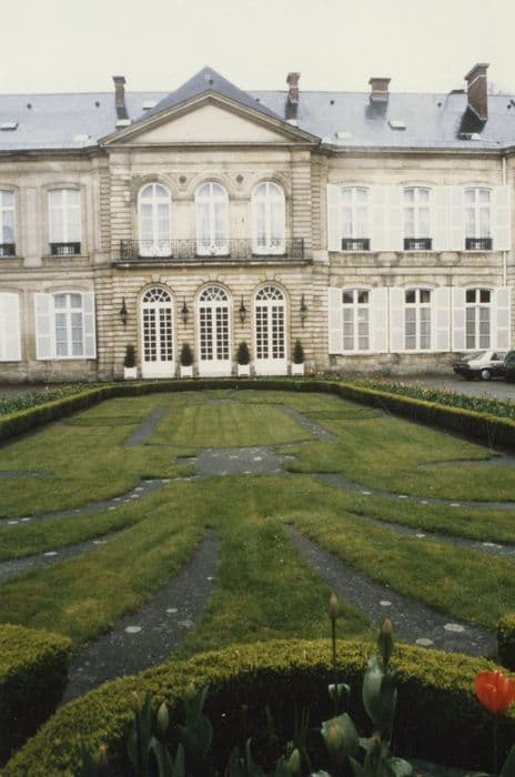 De l'ancien palais épiscopal construit en 1770, ne subsistent que les soubassements en grès. Devenu préfecture en l'an IX, il a brûlé en 1836 et a été reconstruit à l'identique jusqu'en 1856. Le parc est constitué de deux parties distinctes : la cour d'honneur et le jardin avec parterre central et, à droite, le bois, resté proche de sa conception initiale au milieu du 18e siècle.