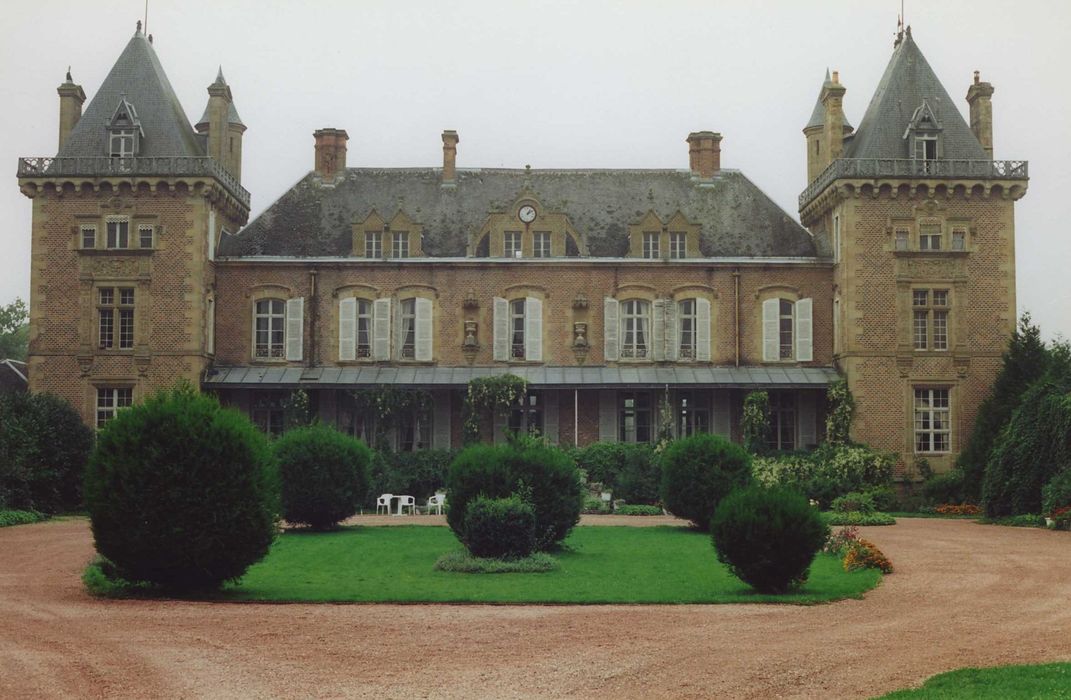 Le château est représentatif du domaine bourbonnais classique à la composition ordonnancée : pavillon d'entrée, allée d'accès, cour d'honneur fermée par le château et deux ailes de bâtiments de communs flanqués de tours rondes. Le château primitif fut remanié vers 1880 par l'architecte Emile Dadolle. La structure primitive (logis central et pavillon carré) fut surélevée et percée de baies régulières ; la façade fut dotée d'une terrasse couverte par une marquise et ornée d'un décor de style ecclectique (baies neo-gothiques et neo-Renaissance, ferronneries neo 18e siècle...). Cet édifice est historiquement lié à des personnages importants comme Du Guesclin ou Jacques Coeur.
