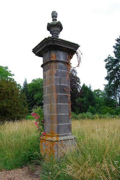 Le château en totalité avec ses communs et son parc, y compris les piliers d'entrée et les décors intérieurs du logis (salle à manger aux peintures murales, salon au papier peint panoramique, salon - chapelle, chambre à dessus-de-porte peints) et des communs (salon du rez-de-chaussée, chambre de l'étage) (cad. XL 4 ; XM 2) : inscription par arrêté du 17 septembre 2007