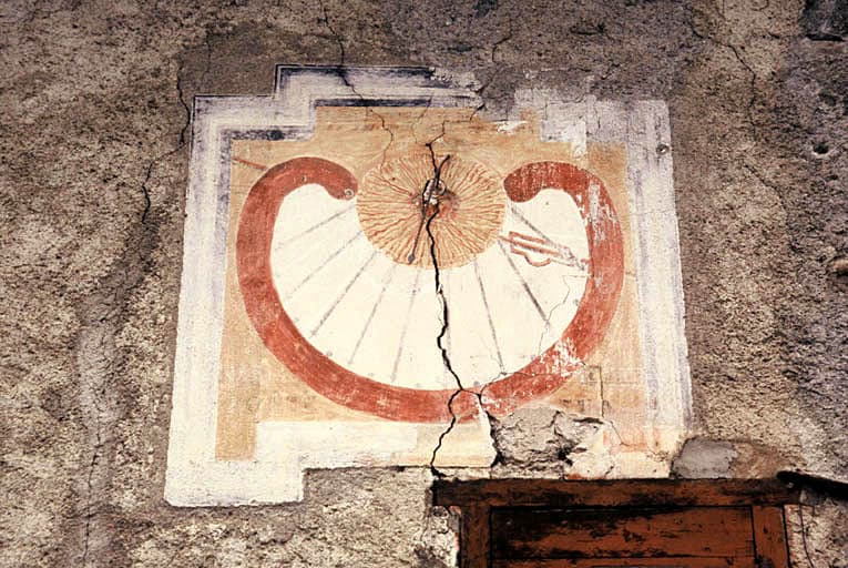 Le cadran solaire, peint sur enduit de chaux avec des pigments naturels, a été exécuté en 1839 par le peintre Zarbula.
