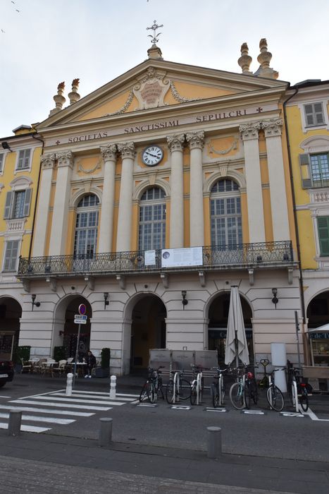La chapelle du Saint-Sépulcre appartient aux Pénitents bleus, l'une des quatre confréries niçoises toujours en activité. Sa construction est indissociable de la création de la place Vittoria (actuellement Garibaldi) à la fin du 18e siècle. Chapelle bâtie sur les plans de Antonio Spinelli par l'entrepreneur André Laurenti de 1782 à 1784. La principale particularité de la chapelle est son intégration au projet urbain ; elle ne se distingue des maisons voisines que par la monumentalité de sa façade (soubassement à bossages, ordre colossal, fronton). Intérieur peint (peut-être par le niçois Emmanuel Costa) au 19e siècle.