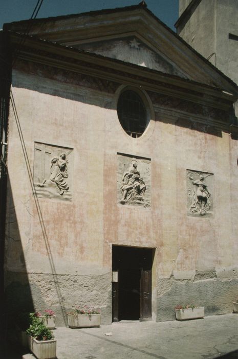 Fondation de la confrérie des Pénitents blancs de Saint-Martin probablement à la fin du 16e siècle. La chapelle actuelle date de la seconde moitié du 17e siècle : forme baroque des fenêtres, entablement stuqué... Façade remaniée au 19e siècle (fronton et faux décor de pilastres peint en trompe-l'oeil en 1843 ; trois bas-reliefs du sculpteur Parini en 1848).