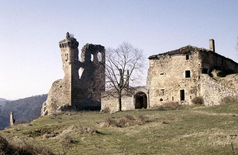 Site défensif comprenant le château proprement dit du 14e siècle (dont ne subsistent que des vestiges, en particulier le donjon carré) et une maison fortifiée des 15e et 16e siècles implantée en position de barrage sur une vaste terrasse maçonnée.
