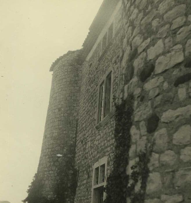 L'enceinte du castrum de Saint-Thomé est mentionnée dès 1374. Au 17e siècle, le château est démantelé par les troupes royales, en réponse à l'alliance entre Claude de Hautefort de Lestrange et Montmorency, allié de Gaston d'Orléans, frère rebelle du roi, la seigneurie étant inféodée aux De Vesc, alliés et parents de Lestrange. Des travaux de restauration sont entrepris au 17e siècle, suivis, à la fin du 18e, par le réaménagement intérieur complet dont le salon du premier étage a conservé les papiers peints exécutés à la détrempe, et les chambres les décors stuqués. L'édifice présente un plan rectangulaire, flanqué de deux tours à l'est et d'une extension à l'ouest. Les trois niveaux sont desservis par un escalier intérieur à retour tournant à droite. L'escalier dessert un vestibule voûté d'arêtes. Le rez-de-chaussée conserve des vestiges médiévaux (cave, cheminée dans le salon Est). Ce plan tripartite avec escalier rampe sur rampe à travée centrale lisible en façade, donne des indications sur l'évolution du plan de la demeure au 16e siècle.