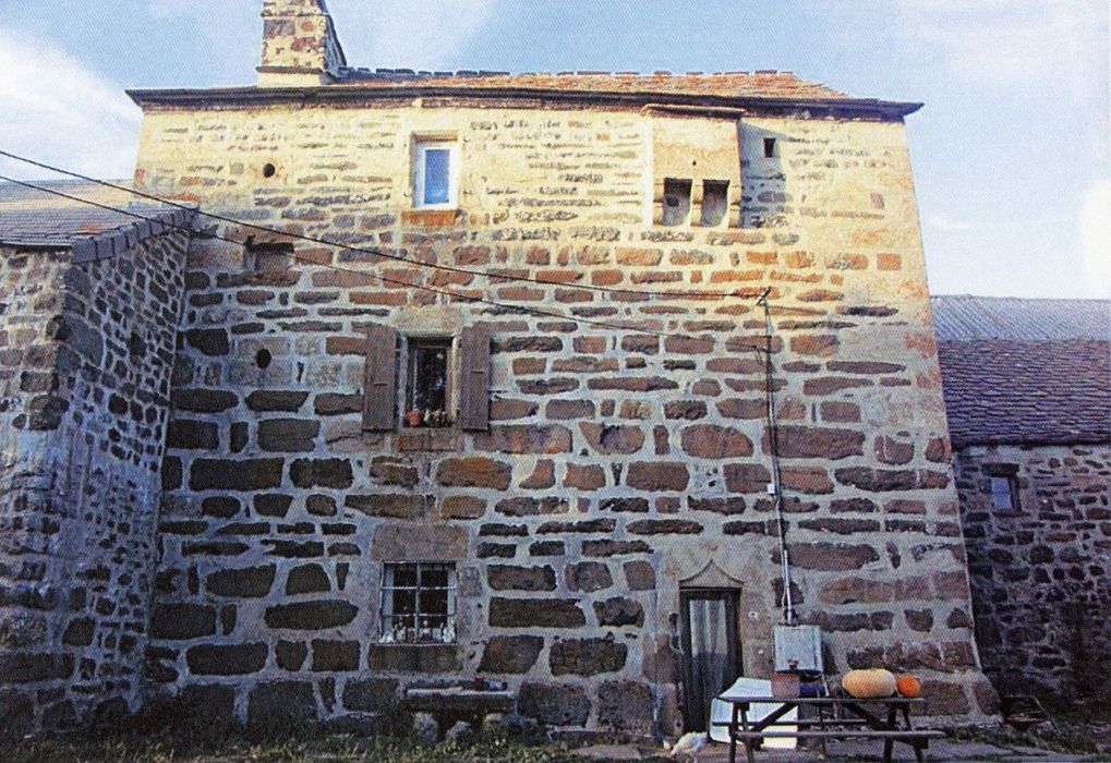 Le logis voisin qui s'y trouve accolé s'élève sur trois niveaux, la façade sud se compose de deux travées. La première travée comprend la porte d'entrée d'entrée au rez-de-chaussée qui pouvait être protégée par une bretèche installée au deuxième étage. La travée nord est formée par trois fenêtres qui permettent un faible éclairage des pièces. Le rez-de-chaussée est occupé par la pièce de vie où se trouve la cheminée monumentale avec la date portée de 1642 sur son manteau et elle est couverte de grandes dalles de basalte au sol. A l'arrière de cette pièce,à droite de la cheminée on trouve la cave voûtée et un accès secondaire donnant au nord. Un escalier engainé donne accès au niveau supérieur qui est également accessible par un escalier en bois depuis la pièce principale. Au premier étage, le plan est identique à celui du rez-de-chaussée. Dans la pièce principale se trouve un fenestrou et l'accès à la bretèche.
