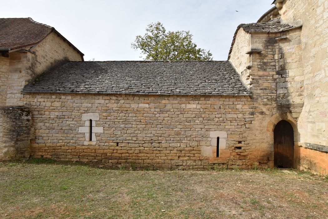 Le bâtiment est situé dans le prolongement de l'absidiole romane méridionale de l'église. Il se divise en deux éléments : un passage entre l'absidiole et la salle capitulaire ; l'ancienne salle capitulaire composée de deux travées voûtées en berceau sur doubleaux et colonnes (autrefois chapiteaux romans sculptés, aujourd'hui disparus).
