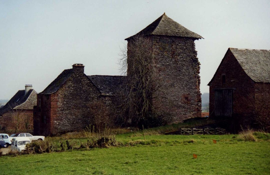 Cette tour est un vestige important de l'ancienne grange monastique qui dépendait de l'abbaye cistercienne de Bonnecombe, fondée en 1167 par le comte de Toulouse. Cette abbaye fut très vite pourvue de granges jusqu'en Albigeois, celle-ci faisant partie des plus anciennes. Elle était spécialisée dans la production de vin. Vendue en 1792 comme bien national, elle fut utilisée par la suite en bâtiment agricole et, à partir de 1925, en forge. La tour, construite en grès de rougier et en gneiss, paraît dater de la fin du 13e siècle ou du début du 14e. Elle devait servir d'habitation et de défense contiguë à une grande remise dont subsistent une cave et quelques pans de mur. La tour présente quatre niveaux, les deux premiers servant de lieu de stockage. Le troisième niveau, réservé à l'habitation, renferme un exemple rare et relativement bien conservé de peinture murale profane.