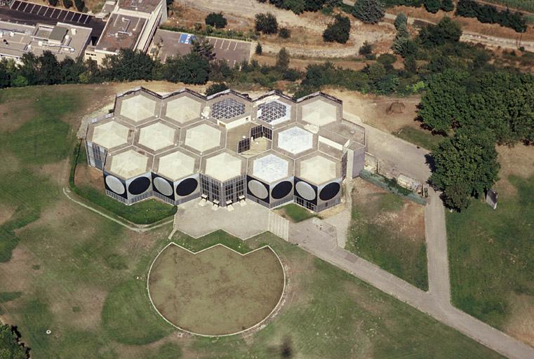 Hongrois d'origine, Victor Vasarely (1906-1997) , élabore à partir de 1966 le projet d'un centre architectonique rassemblant les deux parties de son oeuvre, l'une picturale (art optique) , l'autre théorique. La première est présentée dès 1970 dans le château de Gordes ; pour la seconde, un bâtiment conçu entièrement par Vasarely est construit par Jean Sonnier et son associé Dominique Ronsseray : il est inauguré en 1976. Une grande sculpture, en forme de V, signale le bâtiment, dont la façade aveugle se présente comme un pliage répétitif alternant des panneaux fond blanc - fond noir. La fondation est constituée de seize alvéoles hexagonales accolées ; il ne s'agit pas d'un musée, mais d'un centre artistique à plusieurs fonctions : exposition des "intégrations", but pédagogique, centre d'échanges sur la création contemporaine, ... L'édifice comporte une ossature en béton, habillée de panneaux d'aluminium ou de vitrages ; l'éclairage est assuré par des verrières zénithales.