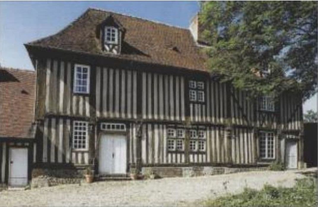 La façade principale du logis présente sur sept travées délimitées par des poteaux montant de fond un faux encorbellement avec sablières d'étage chanfreinées en accolade. Des culots représentent deux têtes d'homme, deux animaux fantastiques et un saint-Michel terrassant le dragon daté de 1520. La grande salle et la grande chambre située au-dessus, sont chauffées par deux cheminées superposées. Au revers de ces cheminées, la cuisine et la chambre sont divisées par un plancher. A gauche de la cheminée de la salle, enclos dans une boiserie à panneaux au rez-de-chaussée, montait l'escalier en vis, en bois, conservé entre le premier étage et le comble.