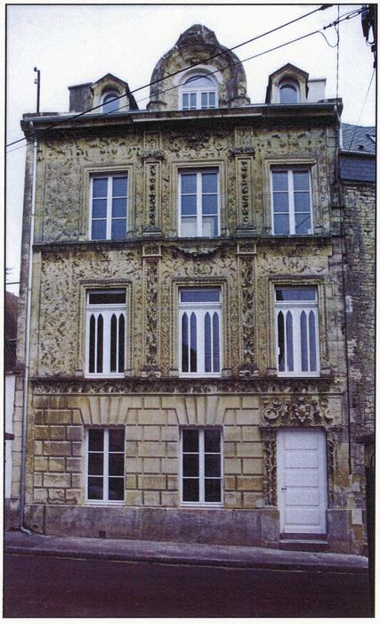 La façade présente un décor typique du retour de l'ornement des immeubles sous la Monarchie de Juillet, et fait suite à la sobriété du néo-classicisme. Au rez-de-chaussée, parement de bossage à chanfrein. Les étages portent des ornements ciselés : moulures des encadrements de fenêtres, pilastres décorés de grappes de raisins ou de fruits, arabesques florales. La maison d'origine, datant du 18e siècle, devait être plus modeste. Un agrandissement et le décor ont été réalisés au 19e siècle.
