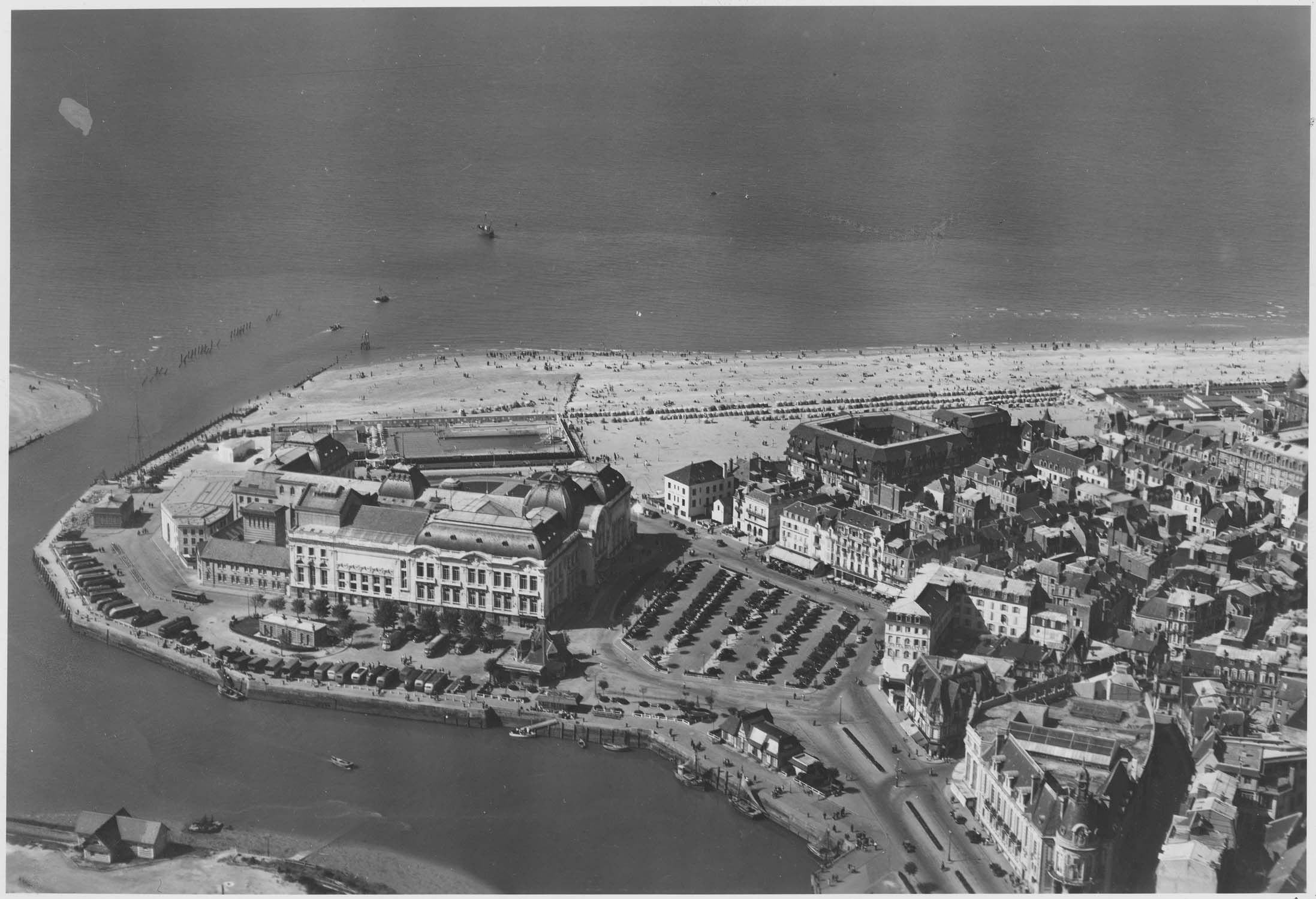 Ce casino, inauguré en 1912, oeuvre d'Alexandre Durville, se distingue par une programmation nouvelle : rassembler tous les usages (mondain, ludique et curatif) dans un seul bâtiment. En 1927, l'architecte Georges Wybo ajoute deux grandes salles à l'édifice (dédiées au jeu de la Boule et du Baccara) ainsi qu'un porche central à la façade sur mer. Le corps de bâtiment principal présente seize travées et est cantonné de deux ailes couronnées de pavillons massifs. L'ossature est dissimulée par des enduits et décors en ciment de style néo-Louis XVI. Les espaces intérieurs sont organisés autour de trois pôles : les salles de jeu en enfilade, les restaurants face à la mer et le théâtre à l'italienne.