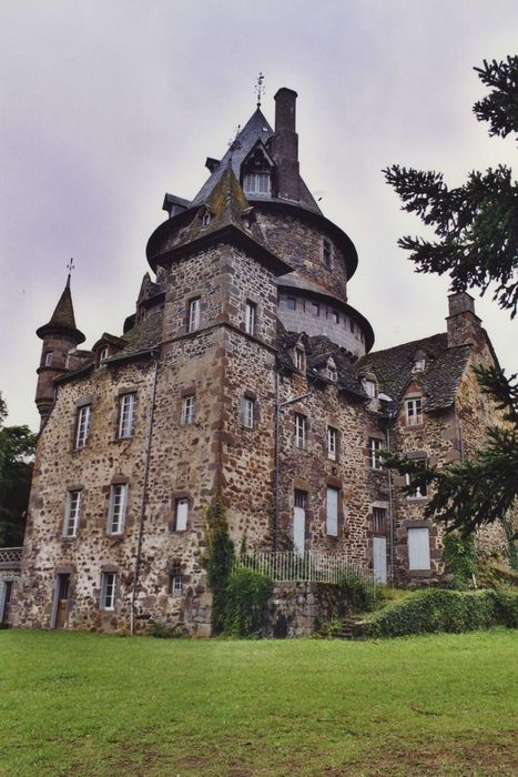 Château constitué d'un gros donjon de style médiéval édifié en 1580 et partiellement reconstruit à la fin du 19e siècle, et d'un logis des 16e et 17e siècles, disposé en L et adossé au donjon au sud-est. A l'intérieur, le donjon a conservé plusieurs cheminées monumentales du 16e siècle (4e et 5e étages) et une salle-à-manger entièrement décorée en style troubadour (rez-de-chaussée). Le logis est doté de décors des 18e et 19e siècles (cheminées, boiseries, trumeaux).