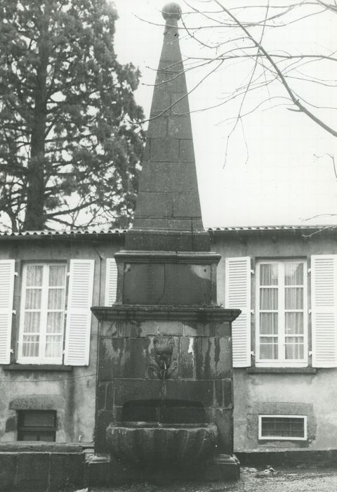 Fontaine publique commémorative élevée pour rappeler l'action de l'intendant Monthyon qui organisa des ateliers de charité afin de fournir du travail aux indigents et de réaliser des travaux d'urbanisme. Edifiée en 1770, la fontaine est un édicule en pierre volcanique composé d'une vasque à godrons surmonté d'un mufle de lion crachant l'eau, l'ensemble étant amorti par un obélisque.