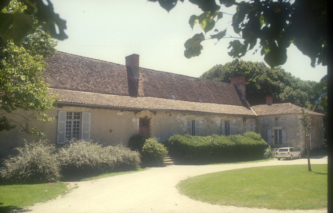 Le château de Peyras, implanté sur un site occupé depuis l'époque protohistorique, est tout à fait caractéristique des constructions frustes et solides de la Charente Limousine. La seigneurie est attestée à partir du milieu du 15e siècle. Le château, fortement remanié au cours des siècles, conserve de son architecture médiévale toute l'aile orientale et une tour d'angle tronconique. Il se compose d'une cour rectangulaire bordée de communs. La façade ouest du logis a peut-être été élevée tardivement (porte du 17e siècle) ; l'intérieur a été remanié aux 18e et 19e siècles ; la charpente est un bel exemple du type à chevrons formant fermes.