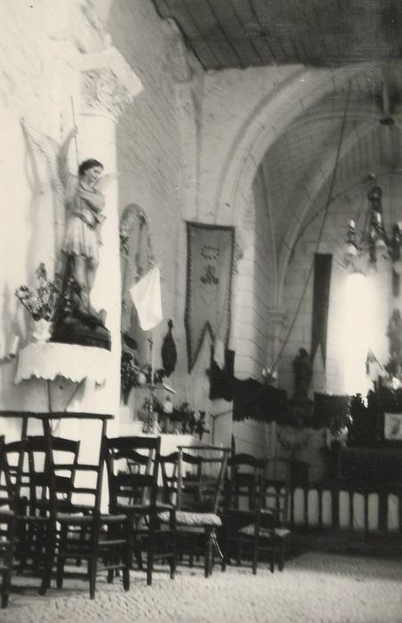 Edifice d'origine pré-romane (nef) comprenant un voûtement et une travée d'avant-choeur du 12e siècle. Extension vers l'ouest à la fin du Moyen-Age. Clocher construit sur le choeur, avec une voûte à quatre branches d'ogives et deux liernes chanfreinées, sans doute du 15e siècle, et restauré au 19e siècle. Une vaste crypte de plan rectangulaire, recouverte d'un berceau surbaissé et agrandie au 15e siècle, servait de lieu de sépulture aux seigneurs du Repaire.