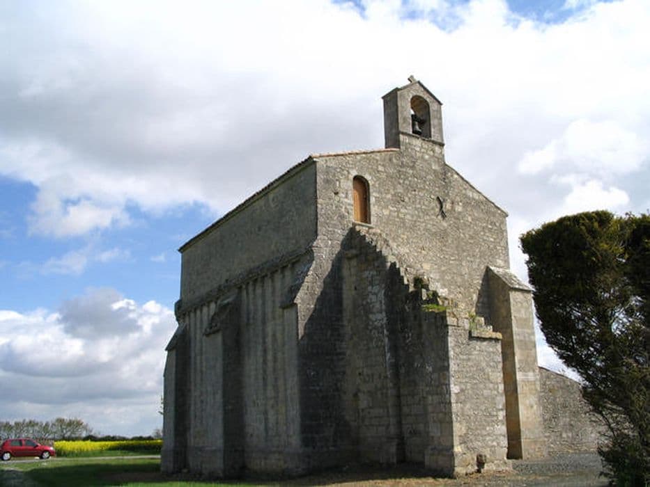 L'église serait implantée sur un ancien cimetière mérovingien et est mentionnée dans les textes dès 1098, donnée à l'abbaye royale de Saint-Jean-d'Angély qui est peut-être à l'origine de la construction de l'édifice roman actuel au 12e siècle. La partie ouest est détruite lors des guerres de Cent ans. Les travées orientales sont alors fermées, à l'ouest, par un mur aveugle qui sera muni d'une porte remployée lors de sa reconstruction au 19e siècle. L'édifice présente un plan rectangulaire, à deux travées. La façade ouest, reconstruite en 1868, est surmontée d'un clocher-mur et percée d'une porte avec archivolte romane à pointes de diamant. Au-dessus de la corniche à modillons règne un mur plus récent (15e-17e siècle) qui a permis de ménager une salle haute, peut-être utilisée comme refuge mais assurément comme pigeonnier. Le chevet plat est percé d'une grande baie gothique en arc brisé. L'intérieur est voûté d'un berceau appareillé dont le doubleau chanfreiné retombe sur des colonnes engagées à chapiteaux historiés. Les murs conservent quelques rares traces de peintures.
