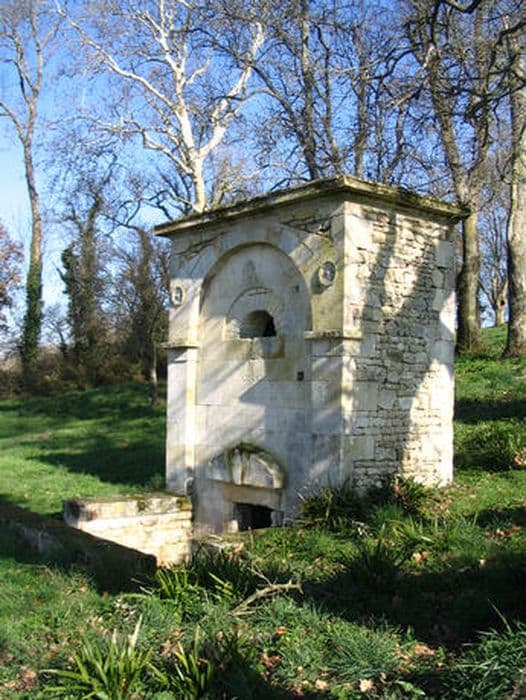 L'usage de ces eaux ferrugineuses remonte fort loin. Au 17e siècle, il y avait quatre sources d'eau ferrugineuse qui s'écoulaient dans un bassin découvert (l'eau était conduite par deux canaux parallèles). La réputation de ces eaux semble oubliée en 1793. Au début du 19e siècle, le nouveau propriétaire fait réparer les bassins et construire un pavillon de plan rectangulaire au-dessus, puis obtient l'autorisation d'exploiter la source en 1819 (une source d'eau claire, l'autre d'eau ferrugineuse). Présence de graffiti de bateaux.
