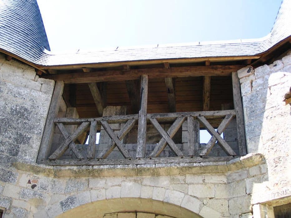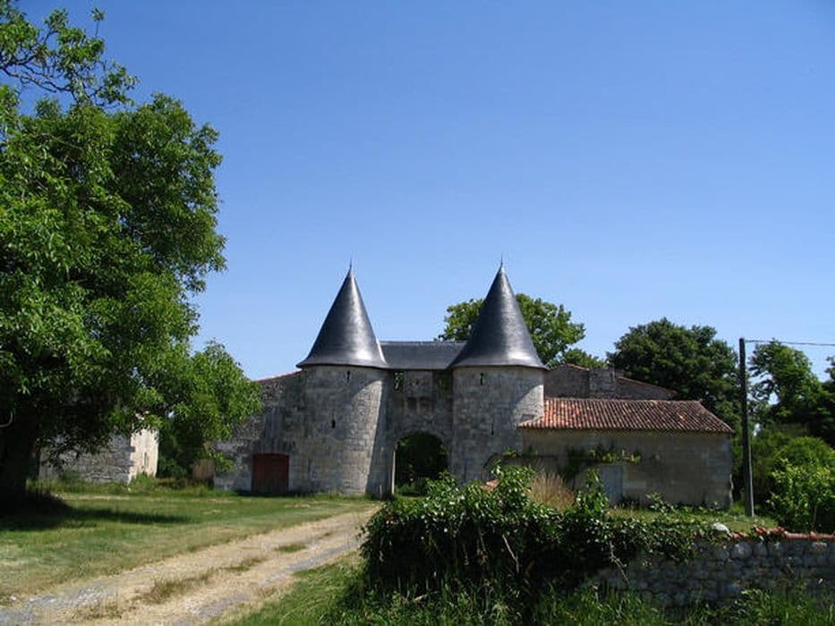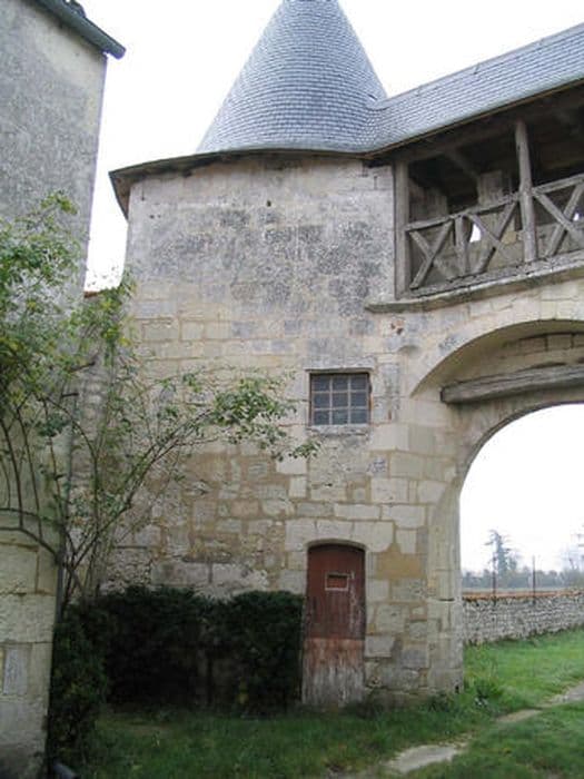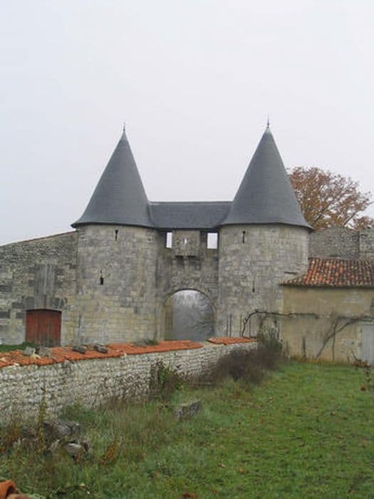 Château d'origine médiévale ayant appartenu aux évêques de Saintes, reconstruit à la Renaissance (châtelet d'entrée des 15e-16e siècle, intact dans son architecture comme dans sa charpenterie). Quelques éléments ajoutés au 17e siècle, dont la grange. En 1791, domaine vendu comme bien national. L'édifice se composait de deux enceintes séparées par un profond fossé inondable. L'enceinte sud-ouest était à la fois basse-cour et cour d'entrée. Elle conserve un châtelet à deux tours cylindriques à poivrière, munies d'archères-canonnières et de bouches à feu. Le passage central, en arc plein cintre, est défendu verticalement par une bretêche à consoles moulurées et un chemin de ronde, fermé côté cour par une rambarde en bois d'origine, à poteaux et croix de Saint-André. La cour est aujourd'hui étroite à cause de la construction, au 19e siècle, de communs et d'habitations. Une vaste grange, peut-être du 17e siècle, forme en même temps mur d'enceinte à l'ouest. Elle est couverte d'une charpente à chevrons portant fermes et contreventement en croix de Saint-André. La seconde enceinte renfermait la cour d'honneur et le logis, entièrement disparu. Il subsiste deux vestiges de la courtine. Au vestige nord est accolé une grande maison de la fin du 18e siècle, décorée de pilastres et bandeaux en façade. Le deuxième vestige, au sud, est accosté d'un bâtiment qui était peut-être une chapelle.