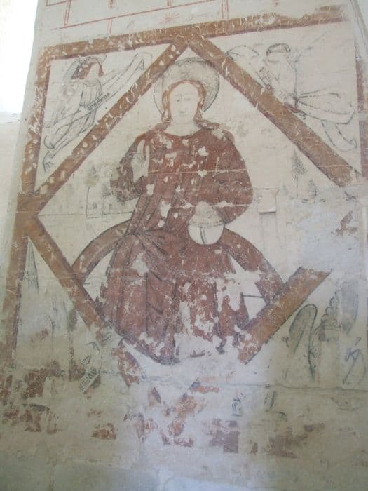 Phase initiale de construction durant la première moitié du 12e siècle avec décor de faux appareil rouge sur fond blanc. Au 14e siècle, voûtement de la nef, élargissement de certaines baies, et deuxième décor peint. A la fin du 15e siècle, troisième décor peint de part et d'autre de la baie du chevet. Au début du 16e siècle, la voûte du choeur est remontée, et un quatrième décor est appliqué. Vers 1574, les Calvinistes saccagent les voûtes de la nef. Le presbytère est vendu à la Révolution et démoli en 1850. Quelques travaux sont entrepris au cours du 19e siècle.