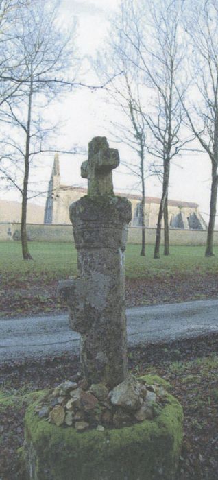 Au sud de l'église se trouve une croix en pierre, autrefois située à un carrefour. Elle présente un fort soubassement et un fût polygonaux, un chapiteau frustre surmonté de la croix trapue à arêtes abattues. Une protubérance sur le fût fait office de petit autel à offrande.