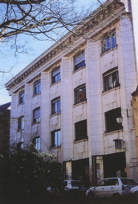 La façade sur rue, le toit-terrasse, le vestibule au rez-de-chaussée, la cage d'escalier (cad. IO 218) : inscription par arrêté du 5 mars 2001