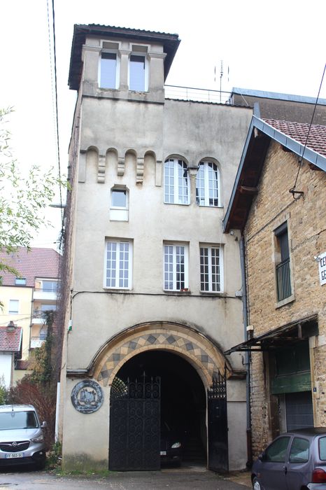 Maison construite au fond d'une impasse avant 1914. Elle comporte un rez-de-chaussée, abritant un porche, deux étages et un étage en surcroît. Le porche est couvert d'une voûte d'arêtes décorée en 1914 par Marius Lucini de personnages : Vierge à l'Enfant, saintes, évangélistes.
