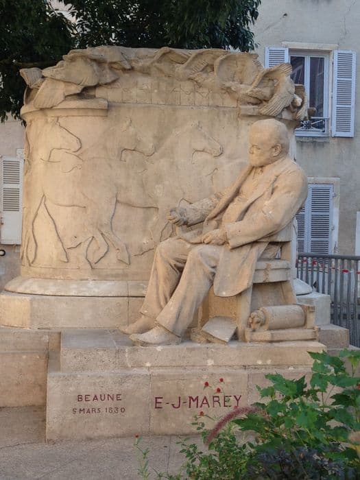 Le 31 août 1913, le Comité Marey et la municipalité, en présence du ministre des finances Charles Dumont, inaugurent le monument à Etienne-Jules Marey sur la place qui depuis porte son nom. L'œuvre, en pierre de Pouillenay, rend hommage à l'enfant du pays, né à Beaune le 5 mars 1830 et décédé à Paris le 15 mai 1904. Le monument est l'œuvre de deux artistes dijonnais, le sculpteur Henri Bouchard (1875 - Paris, 1960) et l'architecte Régis-Joseph Jardel (1866 - Paris, 1939).