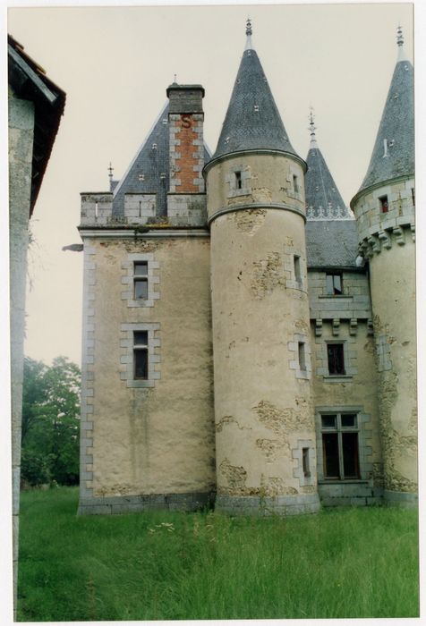 Ancien siège d'une seigneurie de la Combraille datant en partie des 16e et 17e siècles, agrandie en forme de château fort entre 1880 et 1895 par Ludovic Souchard, avocat à Montluçon. Le domaine se compose d'un château et de dépendances incluant une écurie, une étable, une maison de gardien avec un haut corps central en pignon et deux ailes basses latérales, un pigeonnier et une porcherie. Le château est constitué d'une partie ancienne pouvant remonter à la fin du 15e ou au début du 16e siècle, qui a été agrandie au 17e d'un avant-corps formant pavillon. Une tourelle carrée a été ajoutée en 1883. Vers l'ouest, à l'emplacement de bâtiments anciens démolis en 1883, a été élevé en 1895 un château-fort de style néo-gothique, composé d'un pavillon en forme de donjon crénelé flanqué d'un faux châtelet à deux tourelles dissymétriques et d'une tour d'escalier. Le château a été désaffecté entre les deux guerres. L'intérieur est totalement vide de mobilier, et présente un décor de style néo-gothique (salle-à-manger, salon et vestibule décorés de lambris).