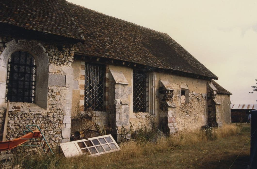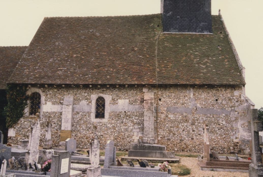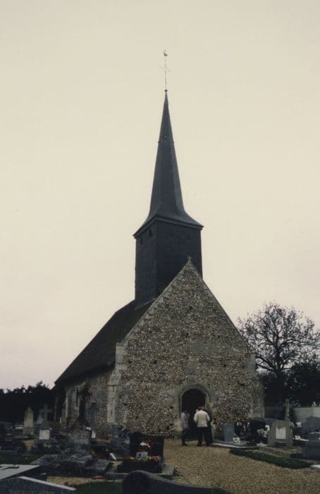 Cette église a été construite en maçonnerie de silex à l'époque romane (choeur rectangulaire à chevet plat du 12e siècle) , mais date dans son ensemble du début du 16e siècle. L'apparence extérieure est banale, mais l'intérieur est richement décoré : l'édifice est entièrement lambrissé, du sol à la voûte. A l'est se trouve une sacristie du 18e siècle.