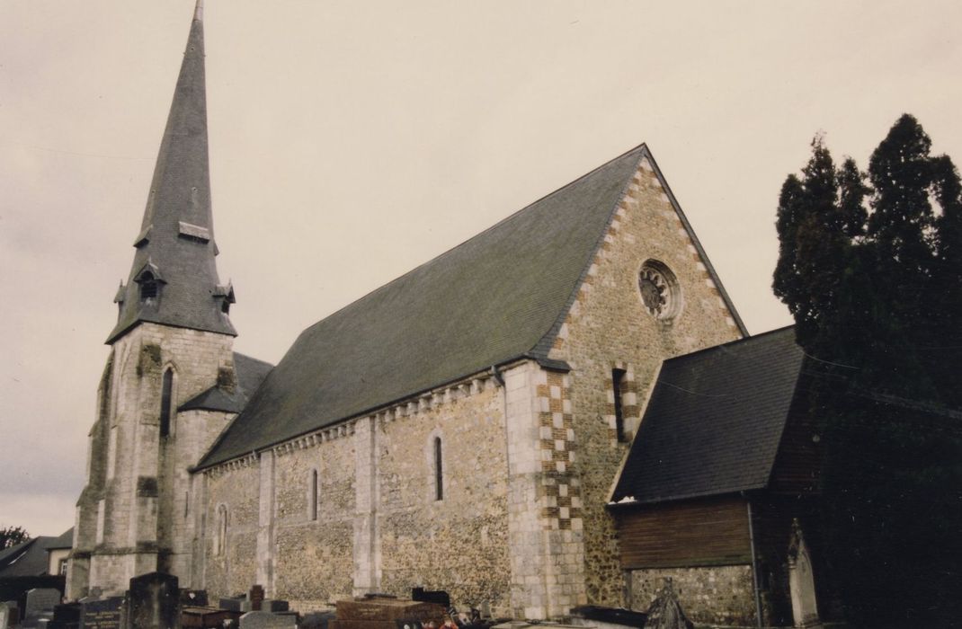 Cette église du 12e siècle à nef rectangulaire est prolongée par un choeur en décrochement avec un clocher du 13e siècle en pierre de taille à larges contreforts ; la partie ouest comporte un porche avec chambre de charité. La nef a été reconstruite aux 16e et 17e siècles (aménagement des boiseries des stalles). L'intérieur, lambrissé, abrite un remarquable mobilier, dont un gisant d'ecclésiastique du 14e siècle.
