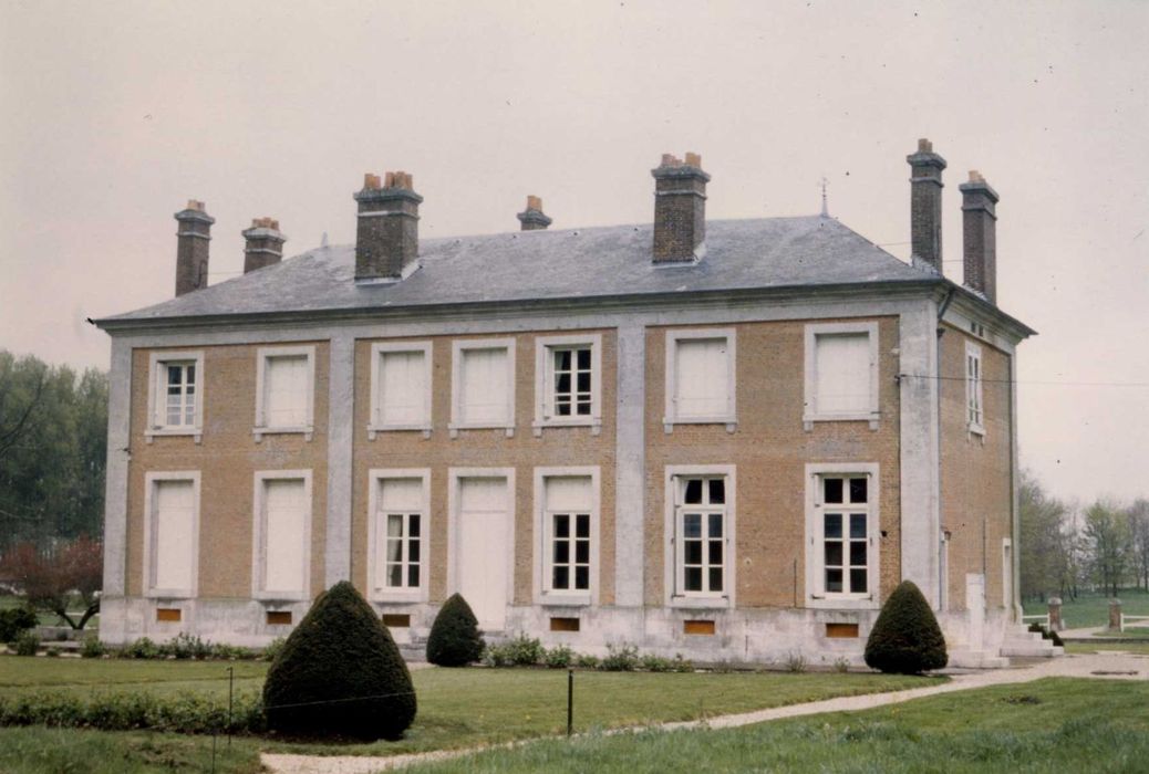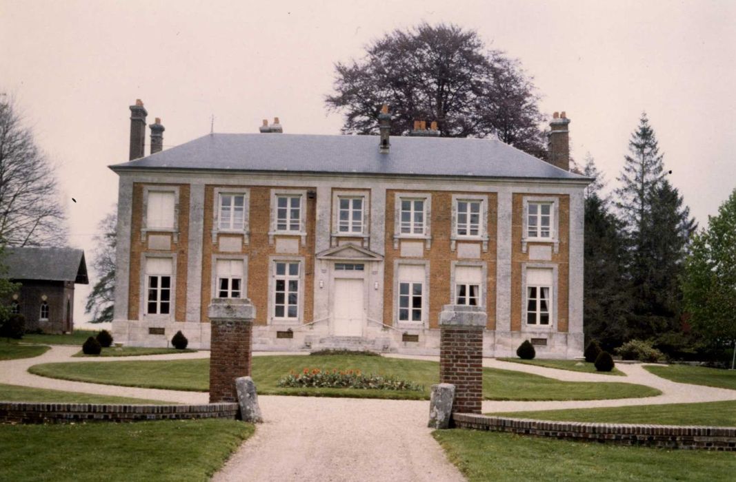 Ce château néo-classique a été bâti entre 1773 et 1789 par Jean-Baptiste Le Brument pour Louis Chef-d'Hostel, négociant rouennais, issu d'une famille originaire de Vatteville-en-Roumois, de religion protestante, qui dut s'exiler lors de la révocation de l'édit de Nantes. Une très importante série de plans originaux et les livres de comptes du commanditaire permettent de connaître avec une grande précision la chronologie de la construction, la provenance des matériaux et des intervenants des différents corps de métier. Outre le château, l'ensemble architectural comprend deux bâtiments de communs et le bâtiment de ferme (grange-pressoir) ainsi que divers aménagements de jardins. Les matériaux employés sont la pierre et la brique traditionnelles en Normandie. L'agencement intérieur d'origine est conservé, la cuisine et le lavoir étant les seules pièces réellement transformées. Les dallages ont disparu, les planchers subsistent en partie. Les décors sont intacts. La salle à manger comprend des panneaux en trompe-l'oeil à décor de paysage signés par Bouël. La ferronnerie est due à Frérot, et la décoration à Le Sueur Le Jeune.