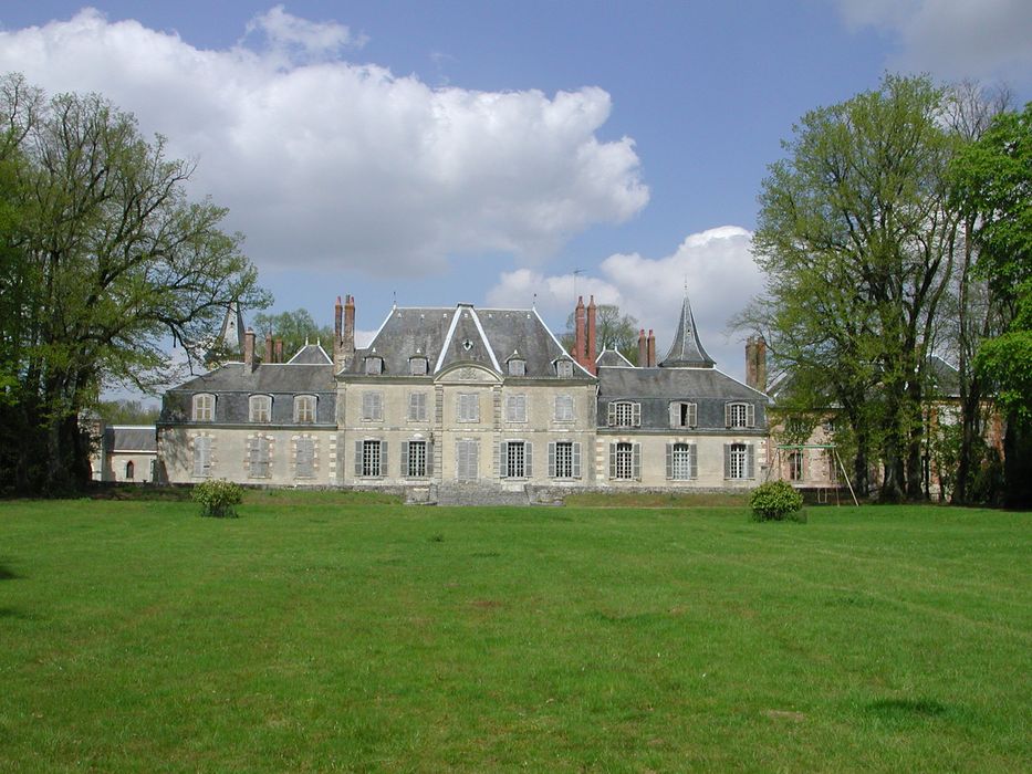 Construction entre 1655-1663. Au 18e siècle, édification du deuxième pavillon encadrant le corps central. Depuis le 19e siècle, la cour d'entrée est encadrée par un corps aveugle d'un bâtiment de ferme et par les écuries. Une chapelle néo-gothique a été aménagée de 1858 à 1862 par Charles Eugène Lambert. Le corps central a été augmenté par deux tourelles qui fournissent des jonctions entre les différentes parties du château par l'architecte Caron. La toiture du corps central a été modifiée. Le parc du château est traversé d'allées dessinant un cadran solaire dont le centre est le château. La première enceinte, entourée d'un petit mur bas et d'une grille réalisée avant 1721, délimite le jardin d'agrément dessiné au 19e siècle. Le jardin comprend une fonte du "Taureau romain" de Clésinger. La demeure présente les éléments représentatifs de l'évolution d'un domaine de Beauce du sud.