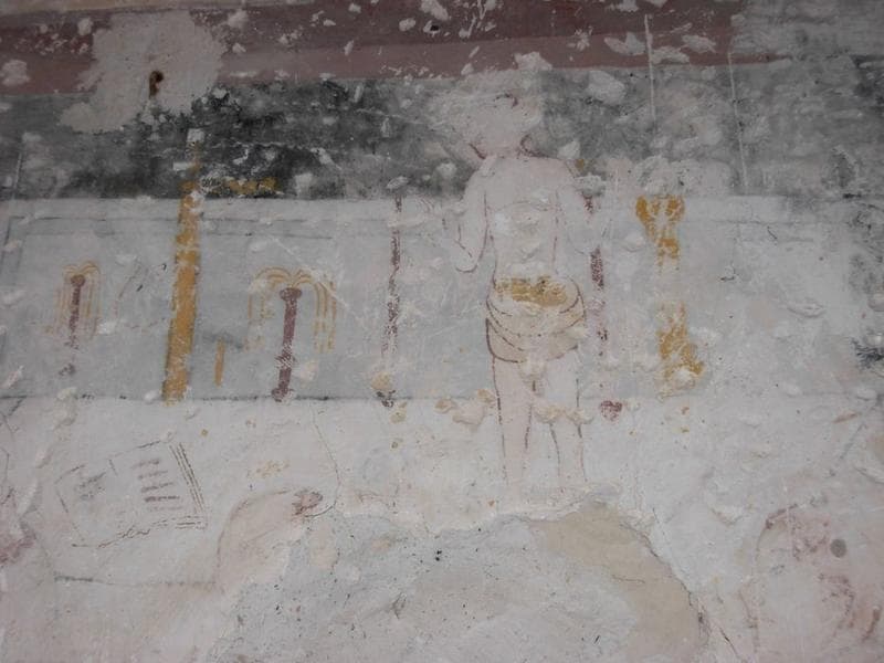 Au vaisseau principal, terminé par une abside semi circulaire, fut ajoutée au nord, au 16e siècle, une chapelle à chevet plat, ouvrant sur le chur et la nef par deux grandes arcades en arc brisé. La tour de clocher, représentative du 13e siècle, ouvrait sur la nef par un arc actuellement muré. Sur les parois de la chapelle, des peintures murales ont été découvertes en 1881. La qualité des peintures à la détrempe et la cohérence des représentations offrent une bonne image d'un décor des premières années du 16e siècle.